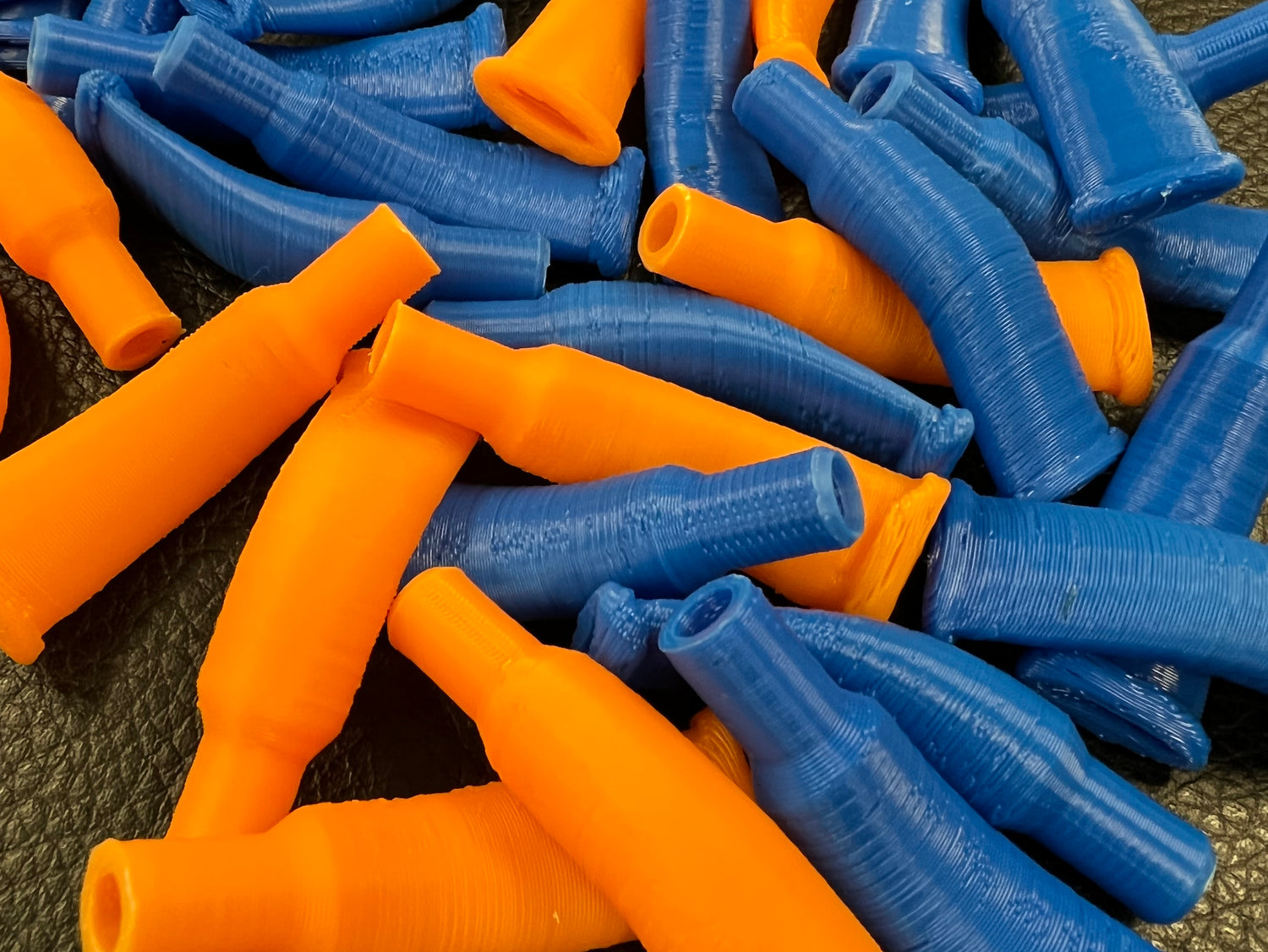 Comfortable curved shape allows your blow hose to hang straight down from your lip. This lowers the torque on your teeth for less stress on your jaw. Really nice for long sessions, try a pack!
