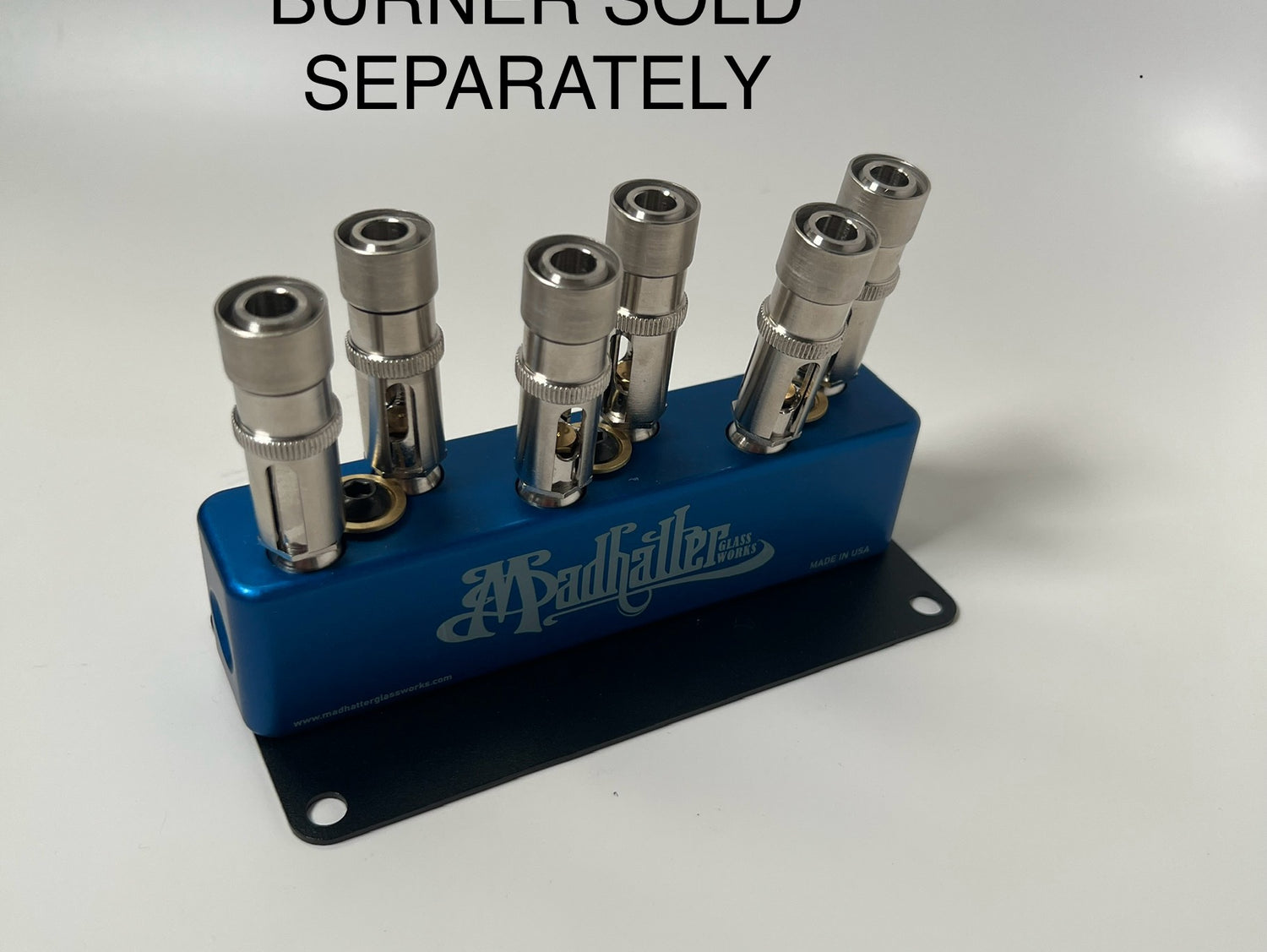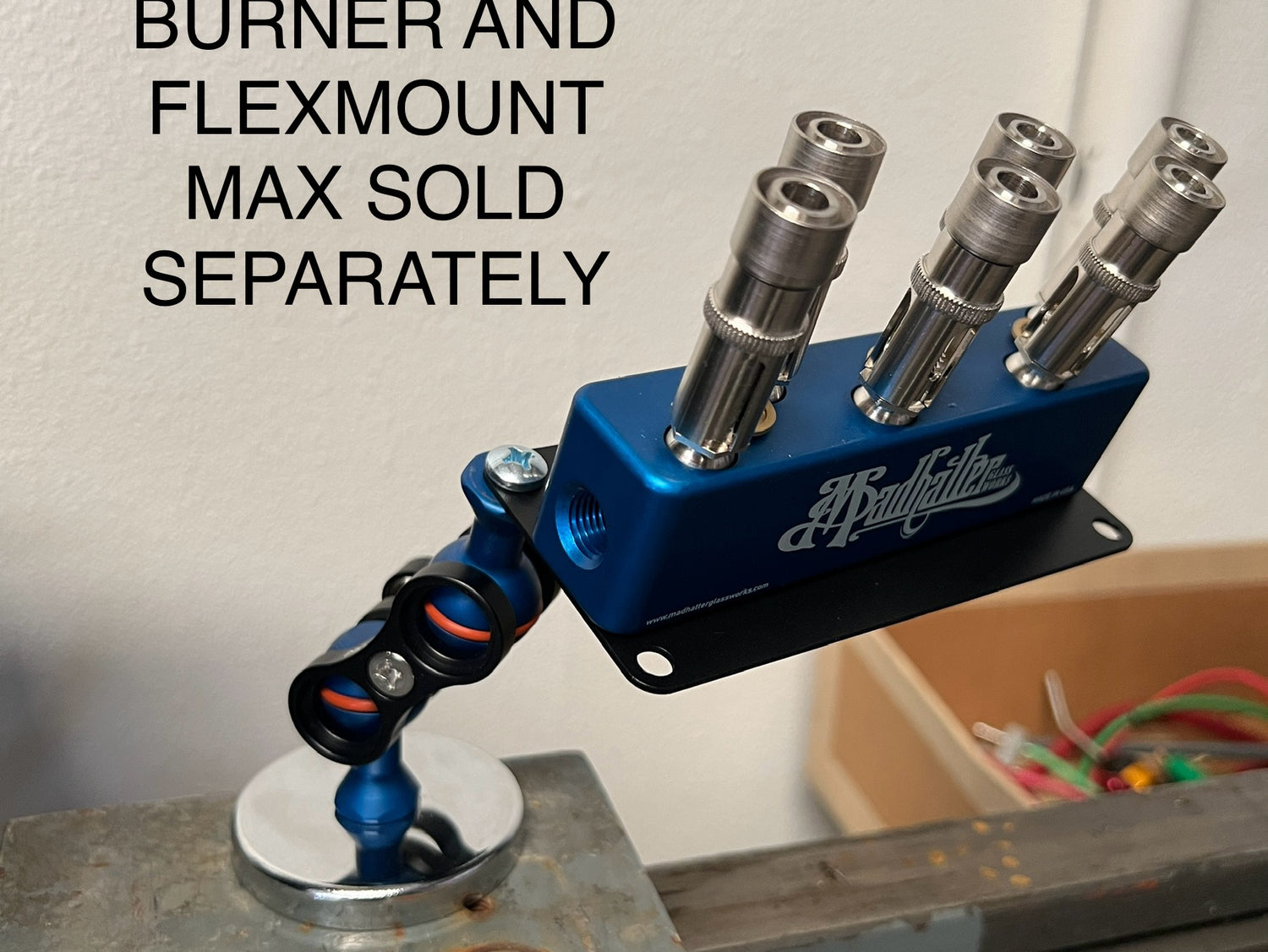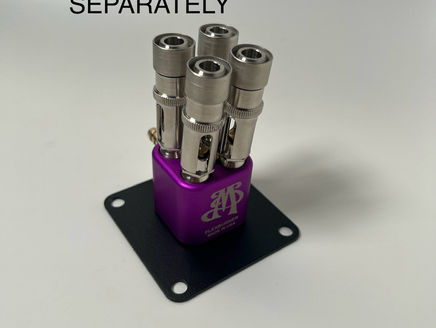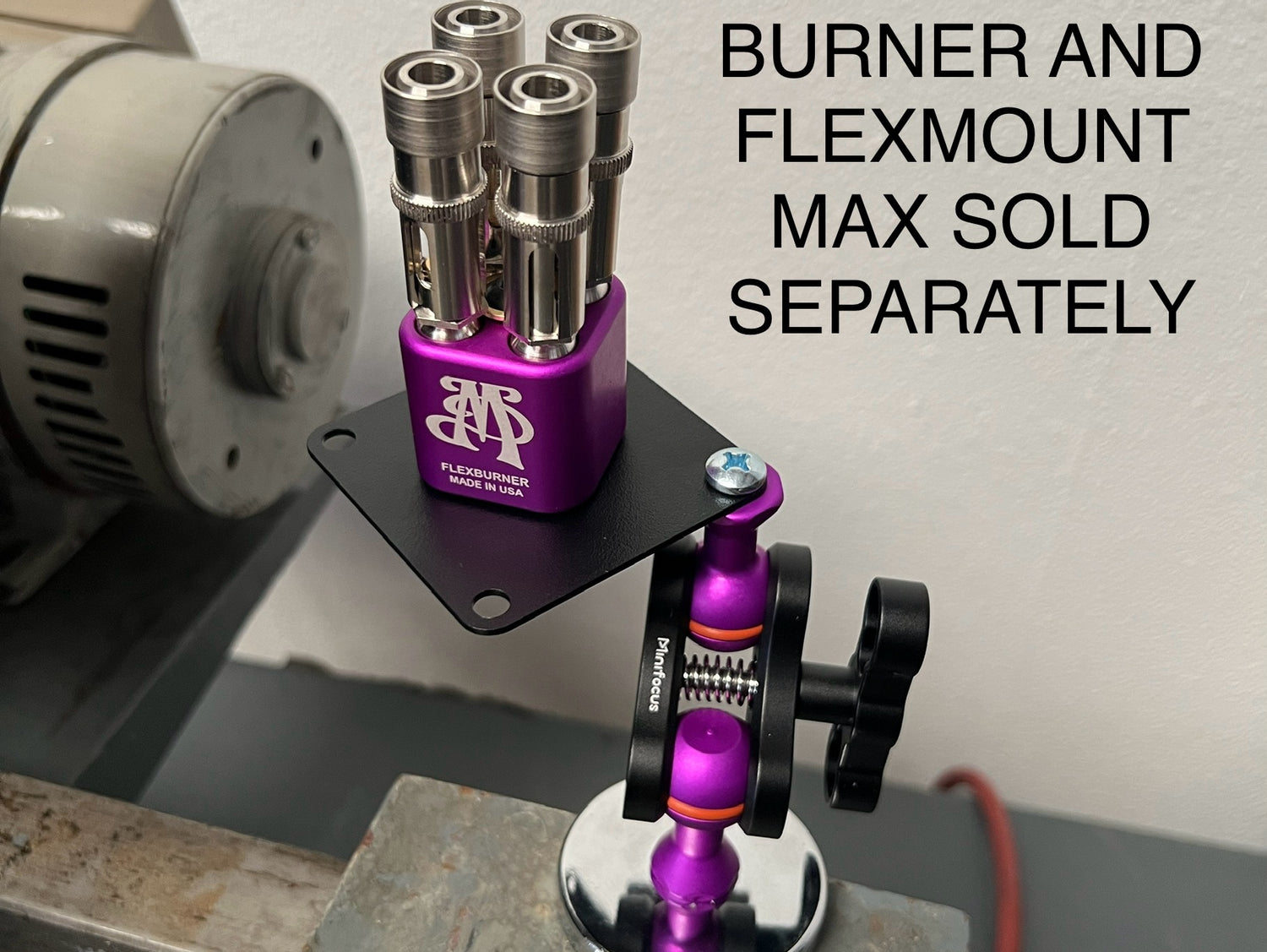 Our Bench Plates are powder coated steel with holes used to create a stable base for Flexburners. The plate can be used multiple ways to make a wide stable foot for our Burners. On a non-magnetic work surface the plates can be screwed to the table or bench and makes a fixed, rigid spot to attach the Burner magnetic base. The plate can be attached to the base magnets of our burner products as a free moving, wide, stable foot for the burner. The plate can be attached to our Flexmount products to create a removable magnetic mounting spot on a moveable arm. Bench Plates have clearance holes for screws up to 1/4" diameter HARDWARE NOT INCLUDED.